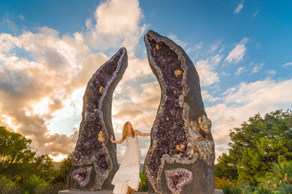 Travel to the Crystal Castle, with mystic gemstones, pretty gardens, café outlet and shop plus a giant Buddha!